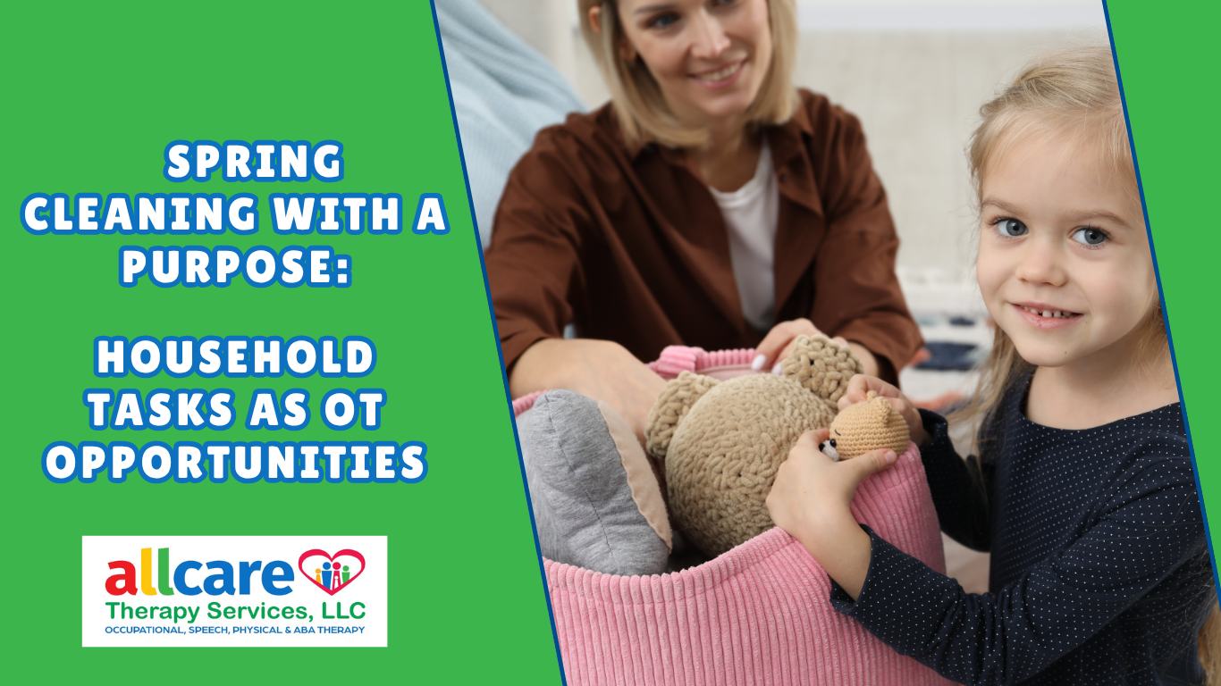 As the weather warms up and families start freshening up their homes for spring, it’s the perfect time to remind parents that everyday chores can double as powerful occupational therapy opportunities. Spring cleaning isn’t just about tidying—it’s a built-in chance to support motor skills, sensory regulation, executive functioning, and independence! Here are easy, meaningful ways to turn spring chores into skill-building moments for kids of all ages.